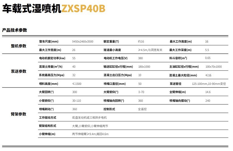 车载式湿喷车ZXSP40B是新一代车载混凝土湿喷设备,其自带行走工程底盘,转场方便,适应性强。同时,该设备采用液压泵送式,系统可靠性高,输送量稳定。喷射混凝土性能高,密实,匀质,高强度。