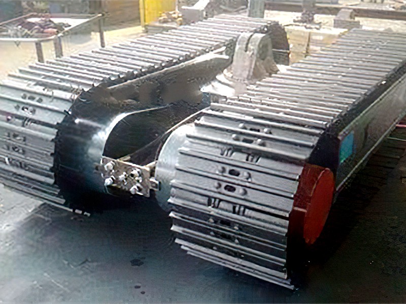 采用履带作为行走装置,履带与地面接触面积大,接地比压小,对地面的破坏性较小,能够在松软、不平整的地面或复杂地形上行驶。具有较强的越野能力和通过性,能够在恶劣的施工环境下稳定运行,同时履带式移动栈桥的承载能力较大,可以满足重型设备和材料的运输需求。