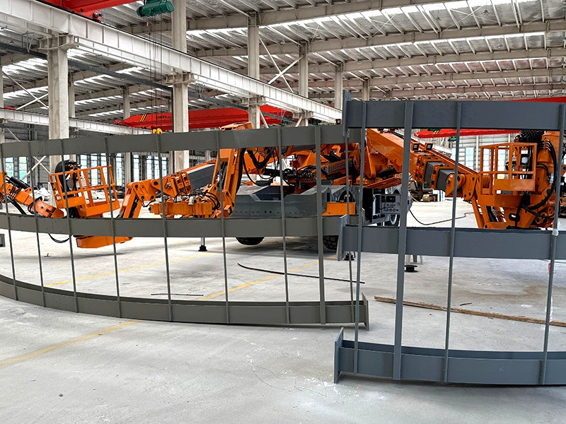 三臂拱架安装台车是隧道施工专用支护设备,可安装型钢拱架、花拱架等多种类型尺寸拱架,适配不同隧道开挖需求。工作效率从设备进场到完成三品拱架安装平均约1.5小时,人员为3-4人,效率提升50%以上,人工方面减少一半以上,大大的提高工程效率。总的来说,三臂拱架安装台车集安全、高效、省人力和经济实用于一身,是现代隧道施工的理想设备。